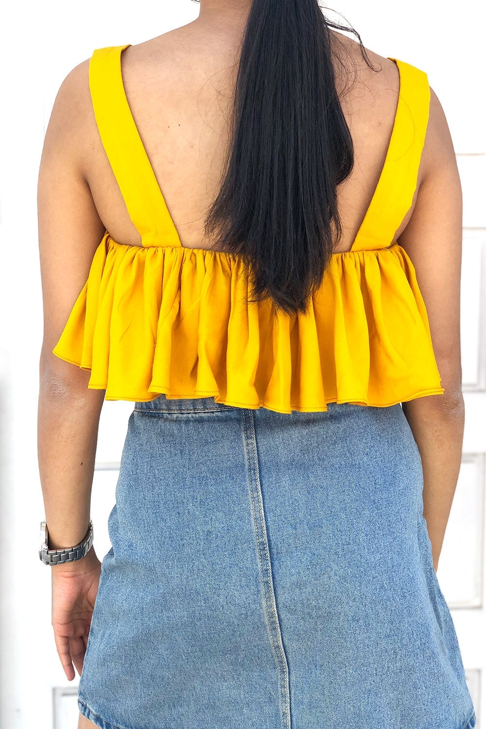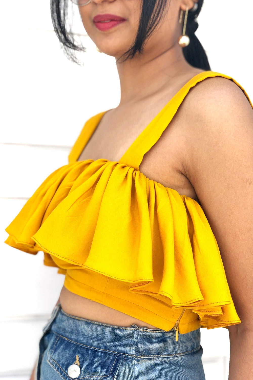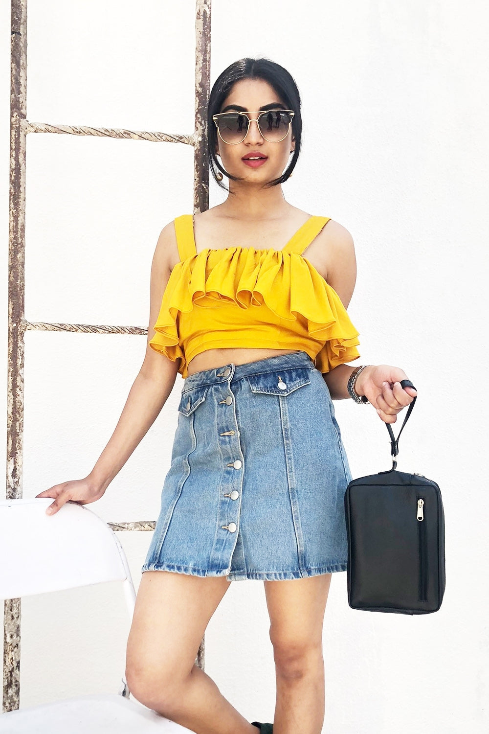 This pretty looking crop top is meant to explore your beautiful ideas with an elegant look. You can pair this top with a short denim skirt and flats for a brunch with your girls.