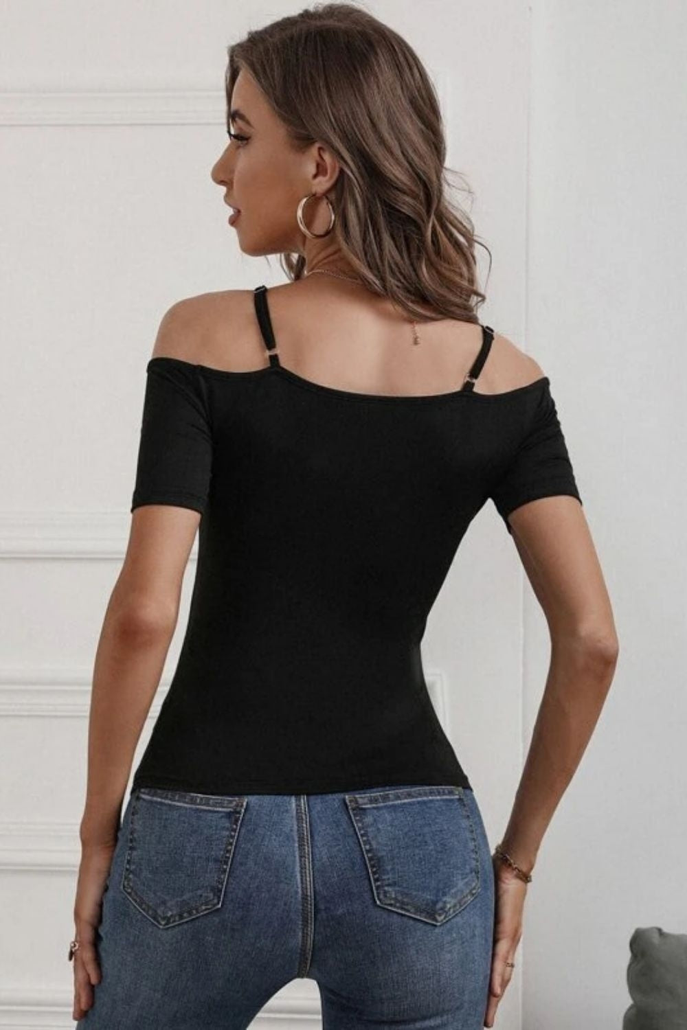 Designed for the fashion-forward individual, this black top is a versatile piece that can be dressed up or down for any occasion. Whether you're heading to a casual brunch with friends or a night out on the town, this top effortlessly transitions from day to night.