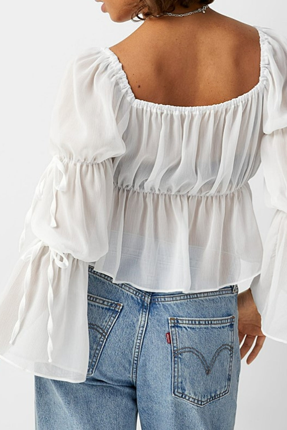 Type-Aesthetic White Top, Color-White, Neck type-Sweetheart neck, Sleeve Length-Full Sleeve, Fit-Regular, Fabric-Crepe