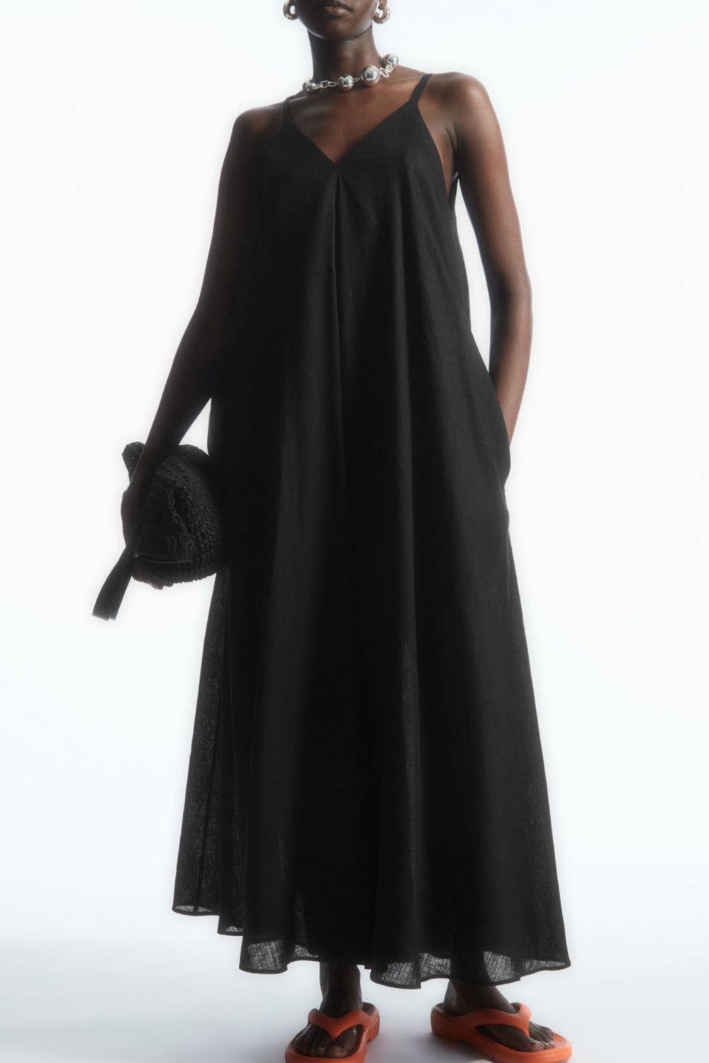 Type-Agia Black Dress Color-Black Neck type-V Neck Sleeve Length-Sleeveless Fit-Slim Fabric-Rayon