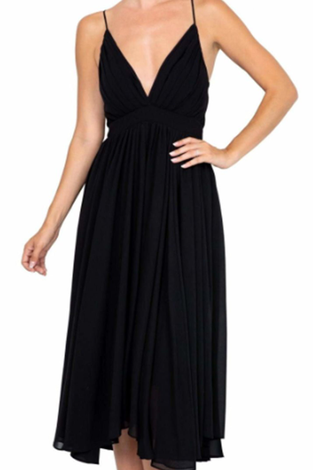 Indulge in the allure of our Amethyst Black Dress, a masterpiece in sophistication and style. The dress features a flattering V-neckline that adds a touch of allure to your look. The sleeveless design exudes confidence and allows for easy movement, making it perfect for a night out or special occasions.