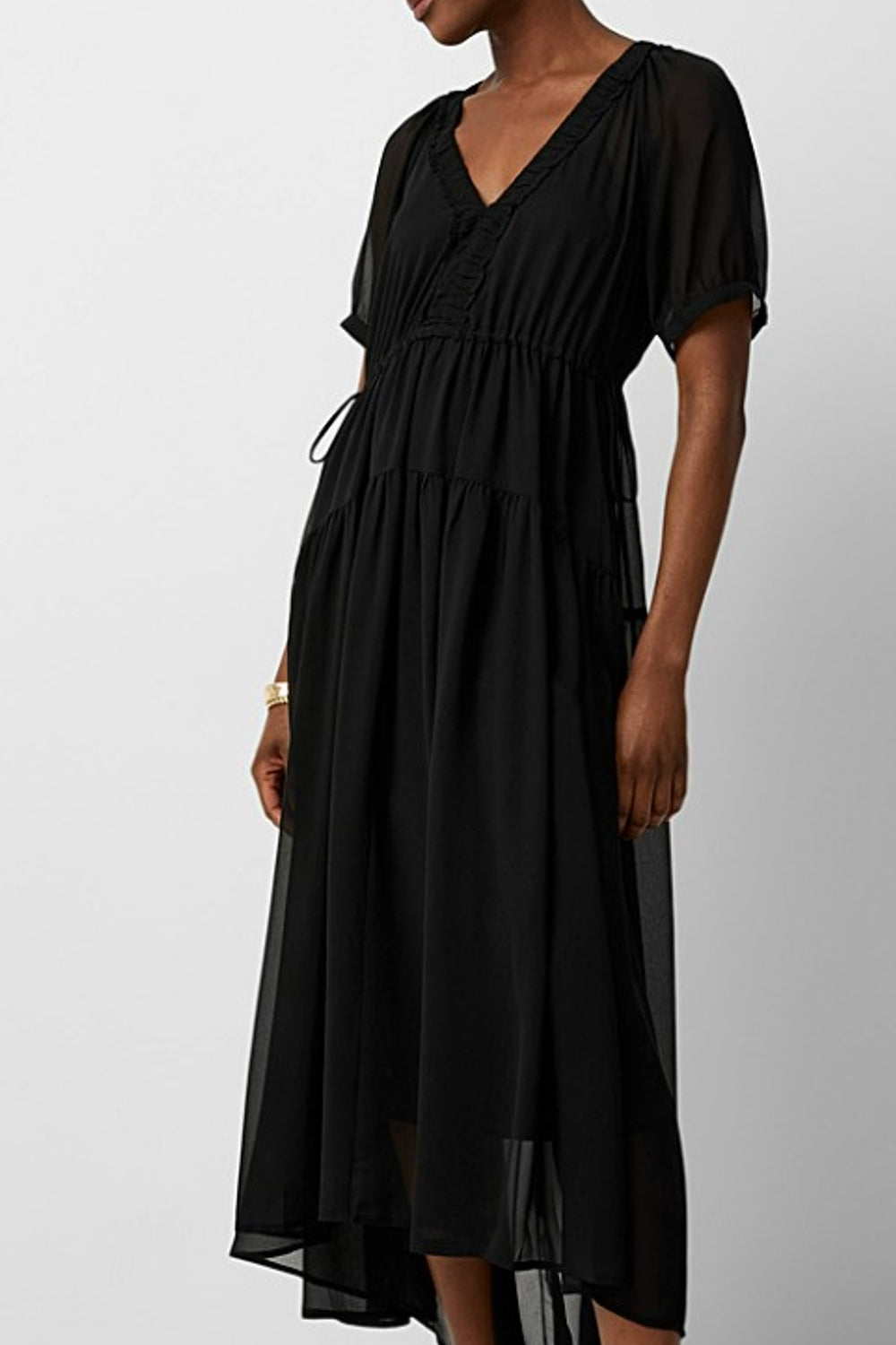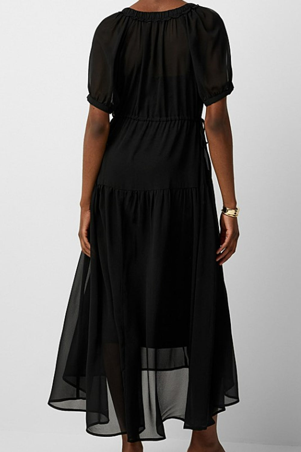 Type-Amused Black Dress, Color-Black, Neck type-V Neckline, Sleeve Length-Half Sleeve, Fit-Regular, Fabric-Rayon