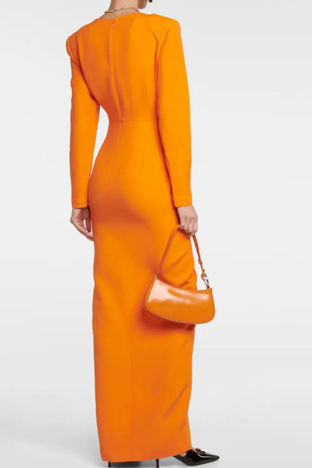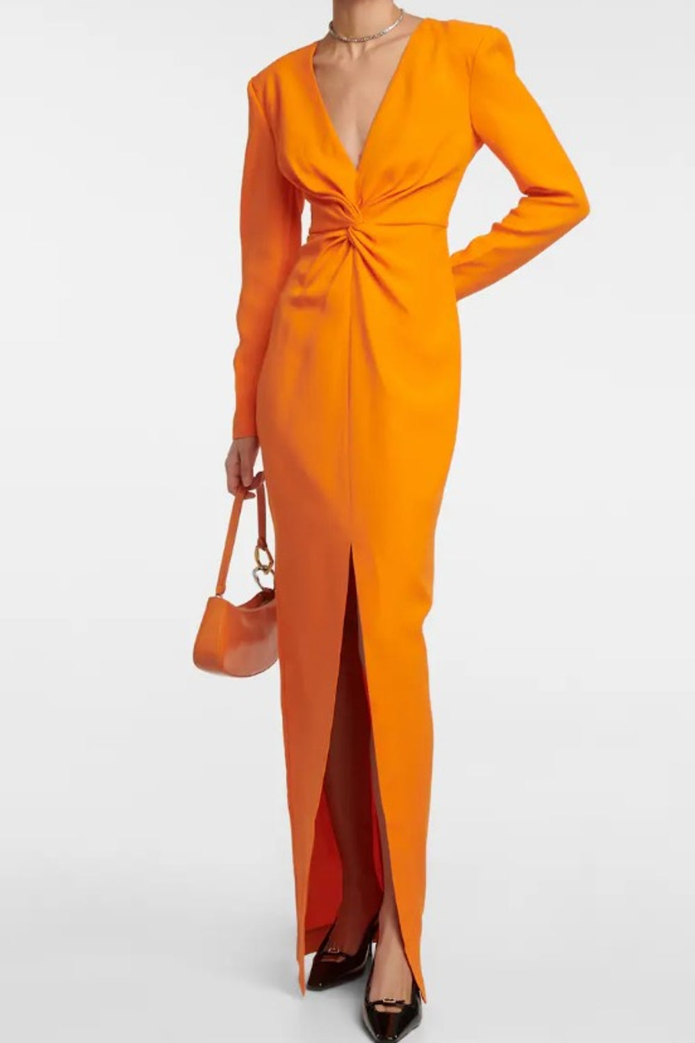 Type-Andong Orange Dress, Color-Orange, Neck type-V Neck, Sleeve Length-Full Sleeve, Fit-Body Fit, Fabric-Poly Lycra