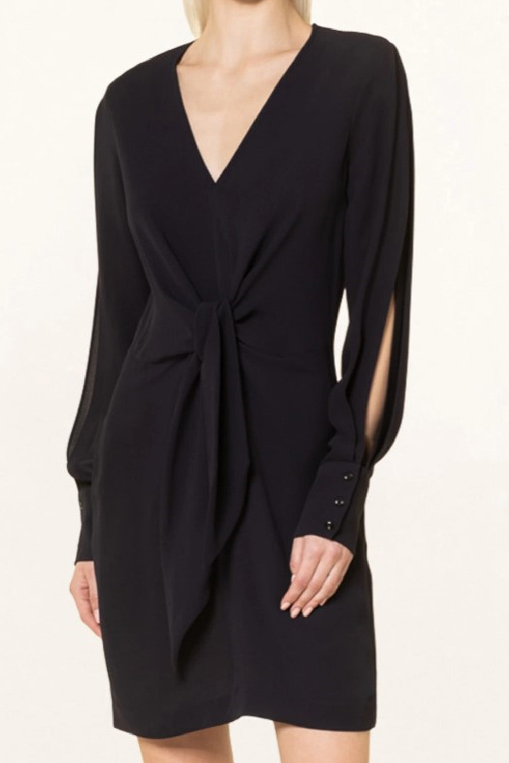 Type-Area Black Dress, Color-Black, Neck type-V neck, Sleeve Length-full length, Fit-Body Fit, Fabric-Satin Lycra