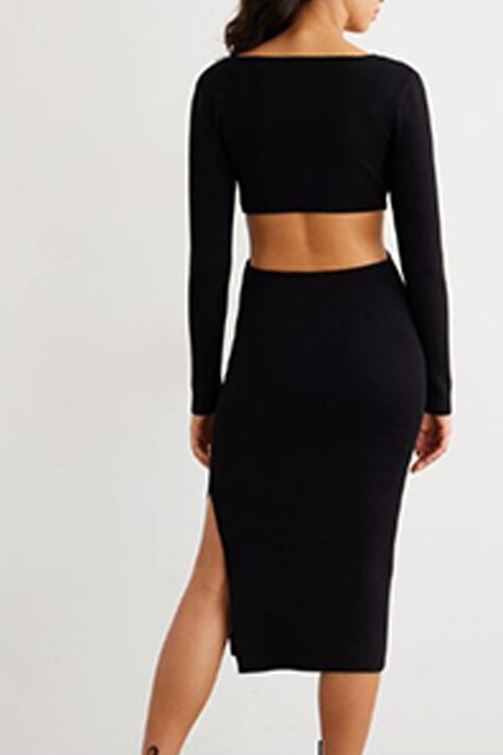 Type-Arta Black Dress Color-Black Neck type-V Neck Sleeve Length-Full Sleeve Fit-Body Fit Fabric-Poly Lycra