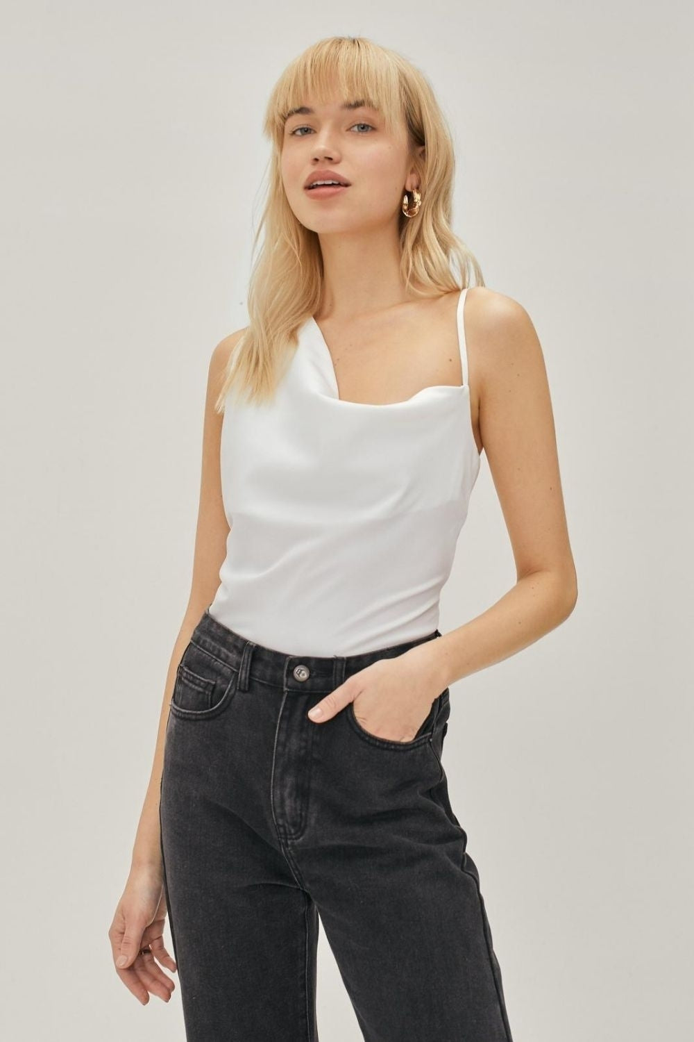 SKU:AsymmetricSatinCowlNeckCami-XS