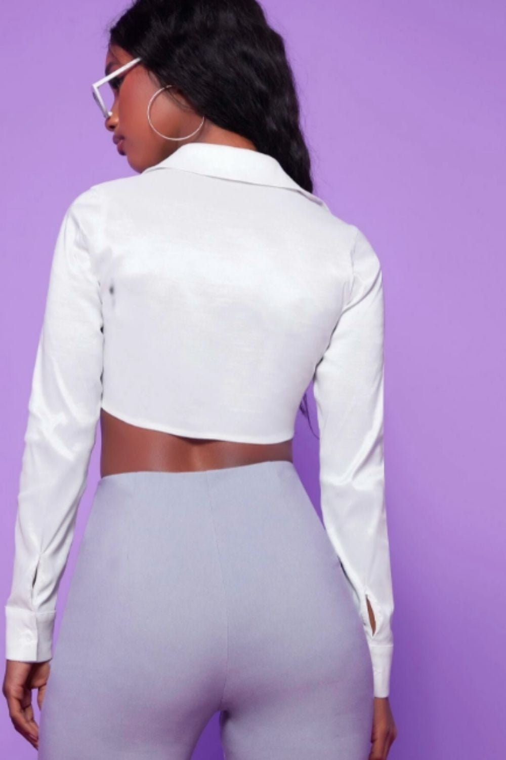 SKU:AsymmetricalHemFullSleevelessCropBlouse-XS