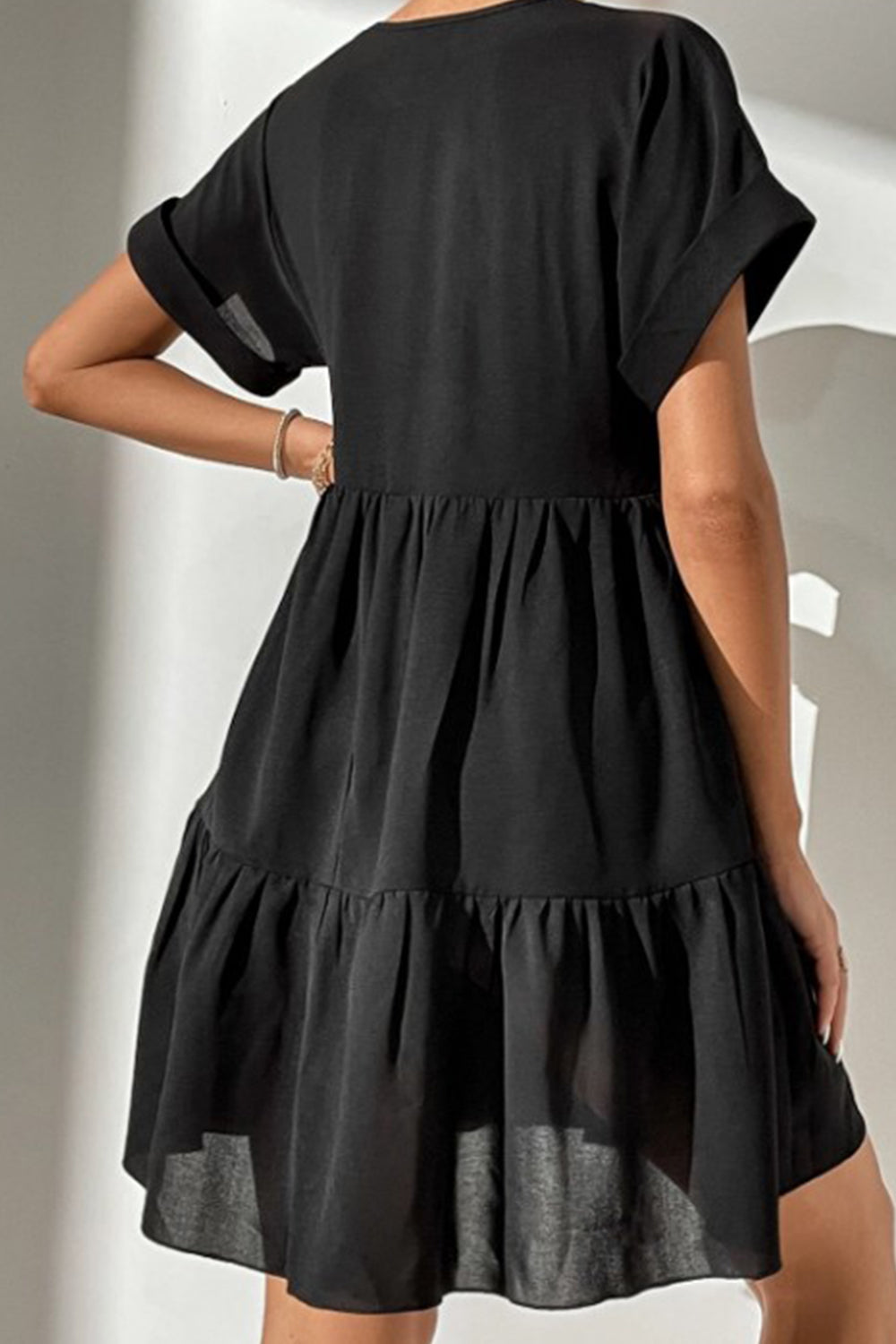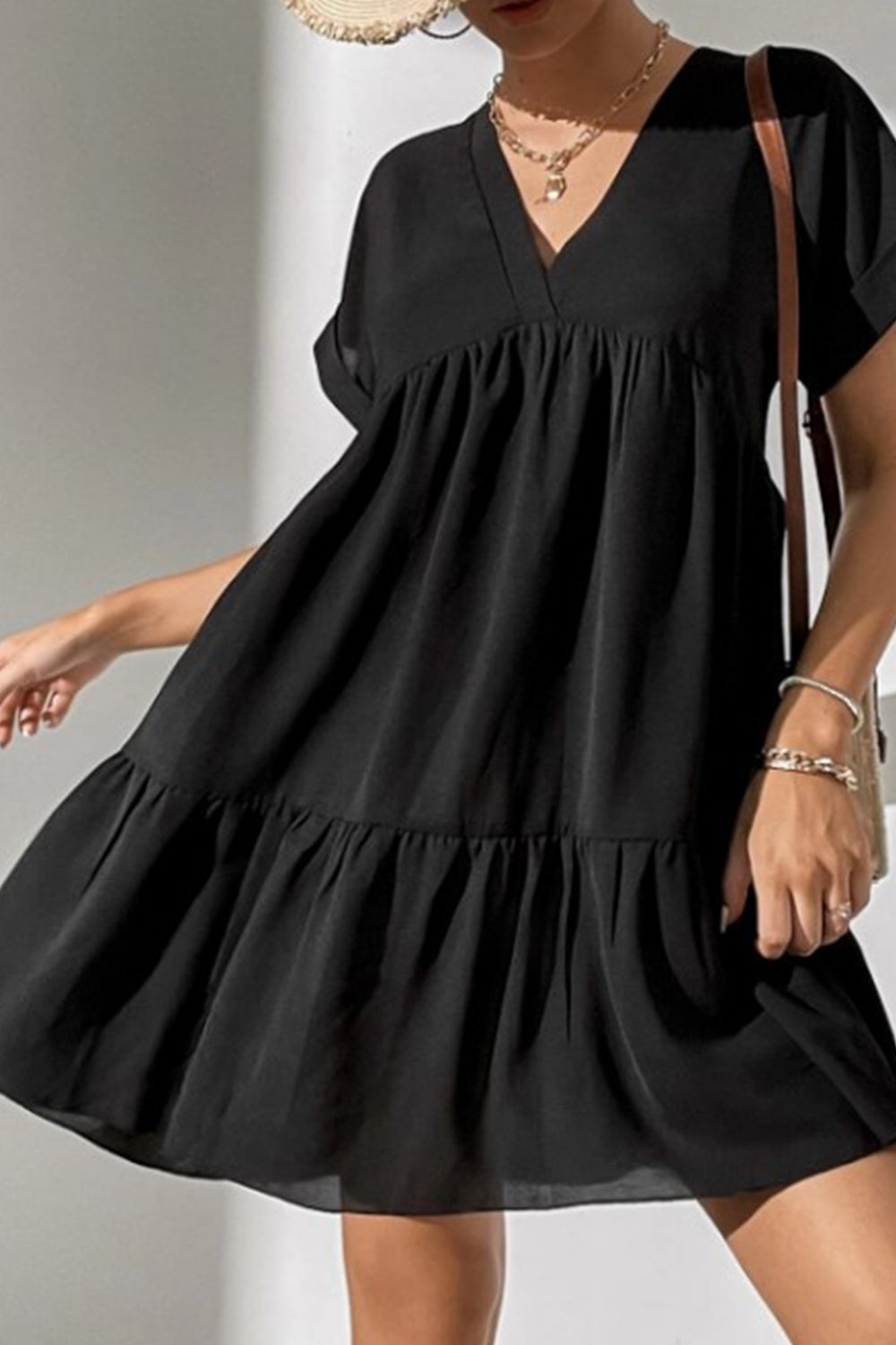 Type-Athens Black Dress Color-Black Neck type-V Neck Sleeve Length-Drop Shoulder Sleeve Fit-Relaxed Fabric-Rayon