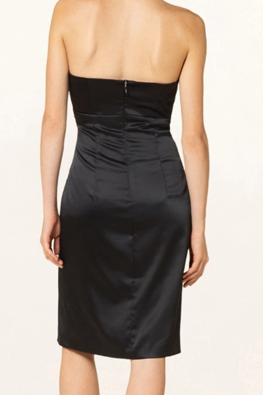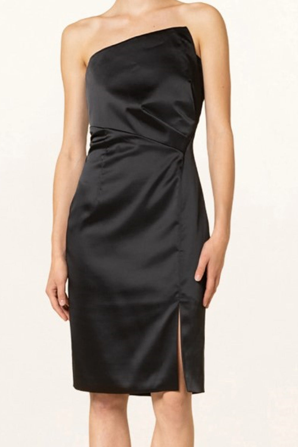 Type-Backcountry Black Dress, Color-Black, Neck type-Asymmetric neck, Sleeve Length-Sleeveless, Fit-Body Fit, Fabric-Satin