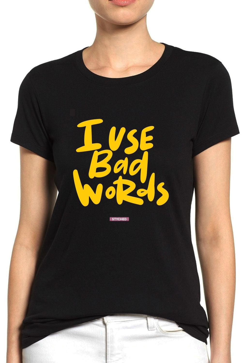 I Use Bad Words - Quirky Graphic Printed Womens Tee-Black
