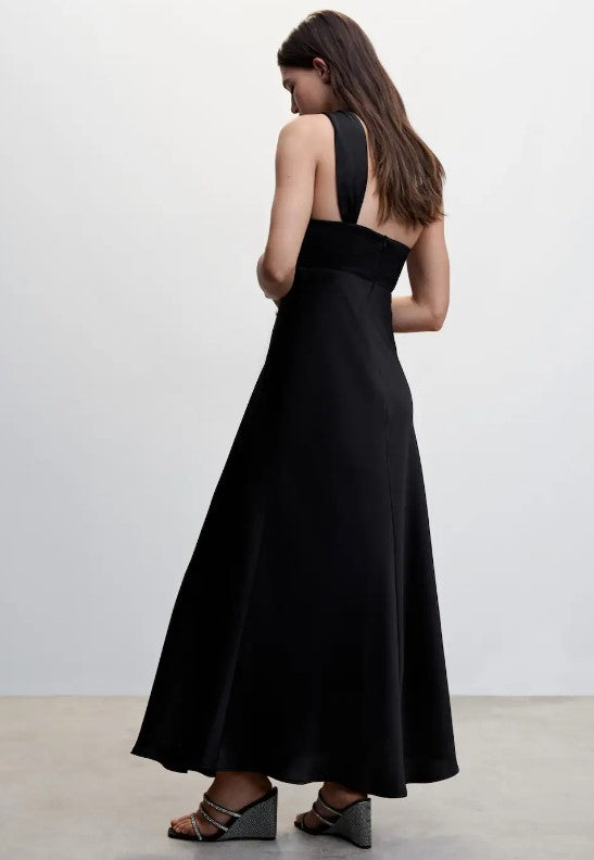Type-Barnaul Black Dress, Color-Black, Neck type-Asymmetric Neckline, Sleeve Length-Sleeveless, Fit-Body Fit, Fabric-Poly Lycra