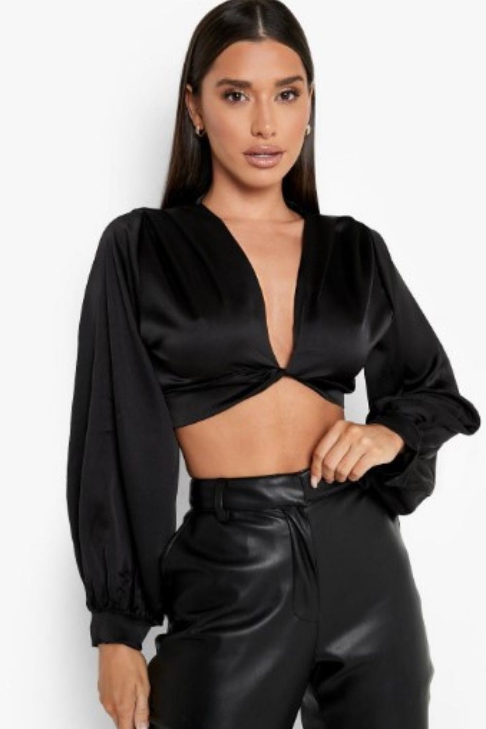 SKU:BeautifulPlungeNecklineFullSleeveBlackTop-XS
