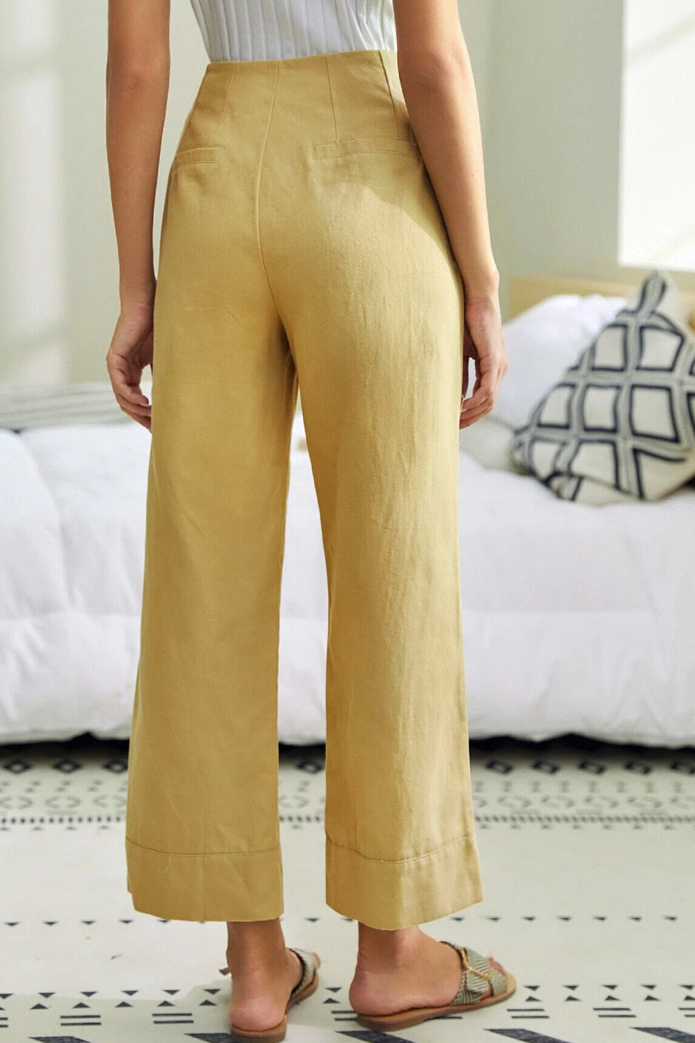 DETAILS- Parallel fit, front darts, ankle length, wide hem.