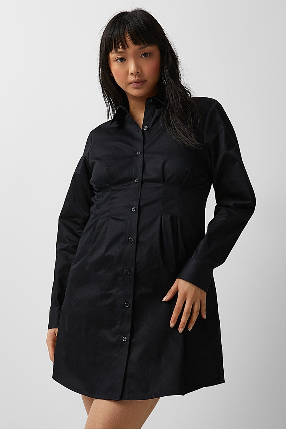 Type - Belleville Black Dress, Color - Black, Neck type - Collar , Sleeve Length - Full Sleeve, Fit - Regular, Fabric - Poplin