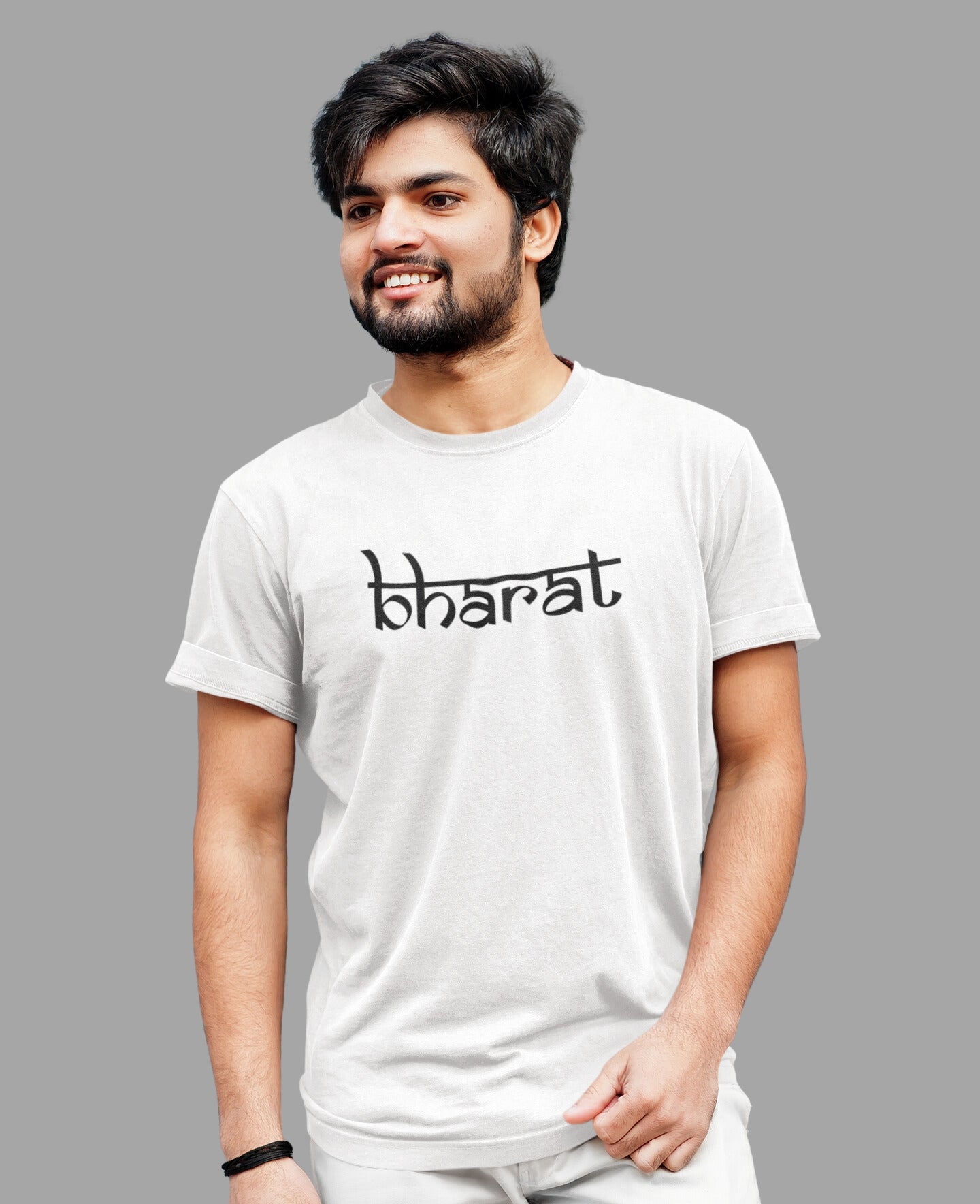 Show your love for Bharat with this minimalist Bharat printed tshirt. A must have classic graphic tee shirt for all Indians. Made of cotton.