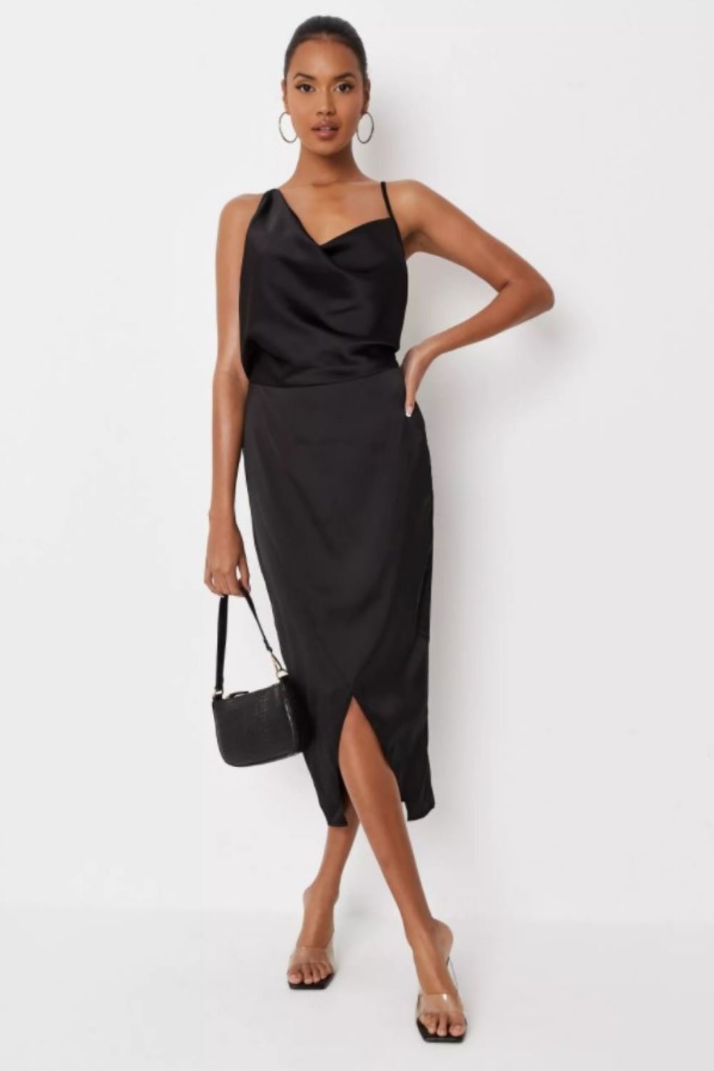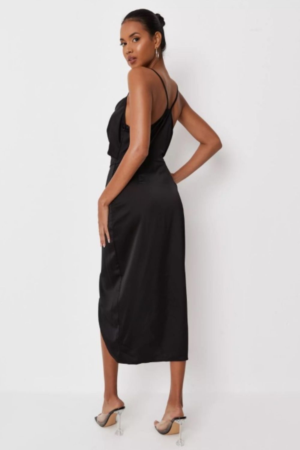 Black Asymmetric Drape Midi Dress