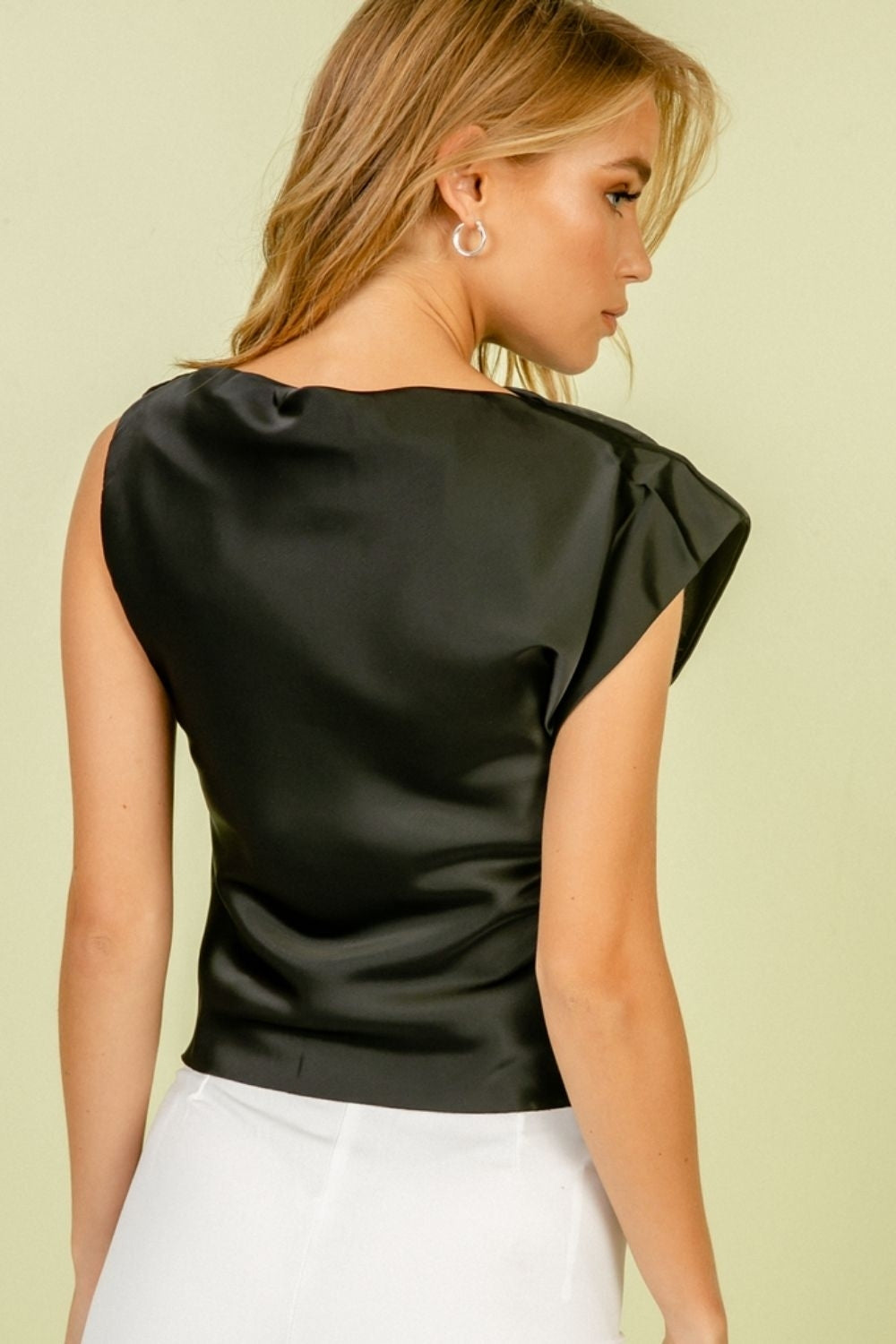 SKU:BlackAsymmetricSleeveLengthTop-XS