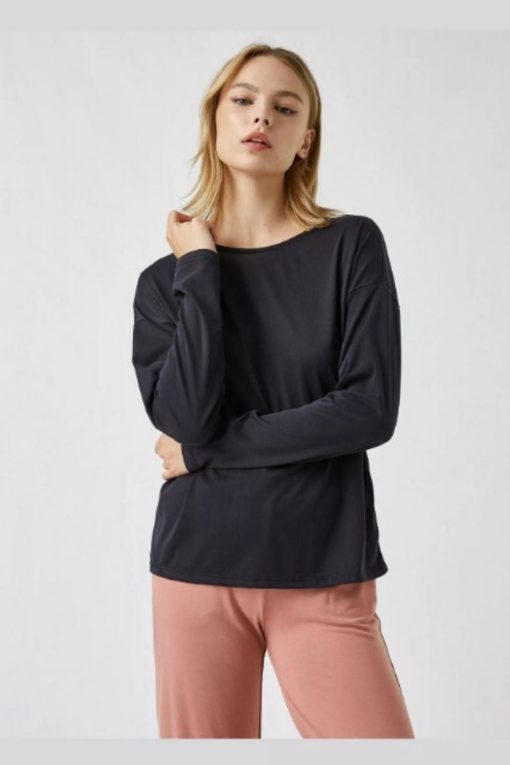 Type- Black Back Cut Out Round Neckline Top