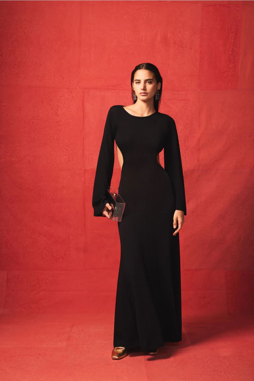 SKU:BlackBacklessCutOutFlowyDress-XS