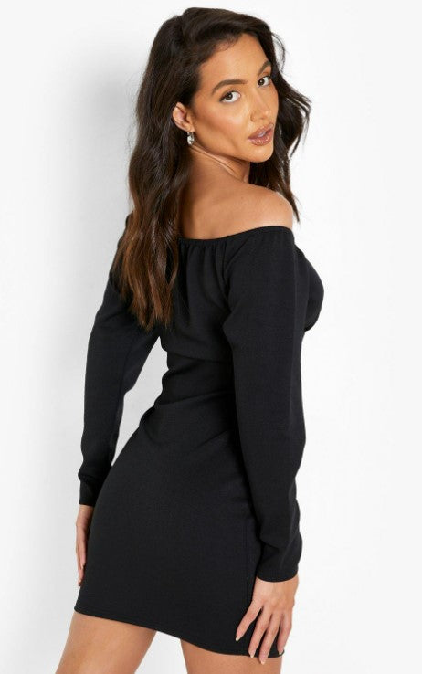 SKU:BlackBardotLongSleeveMiniDress-XS