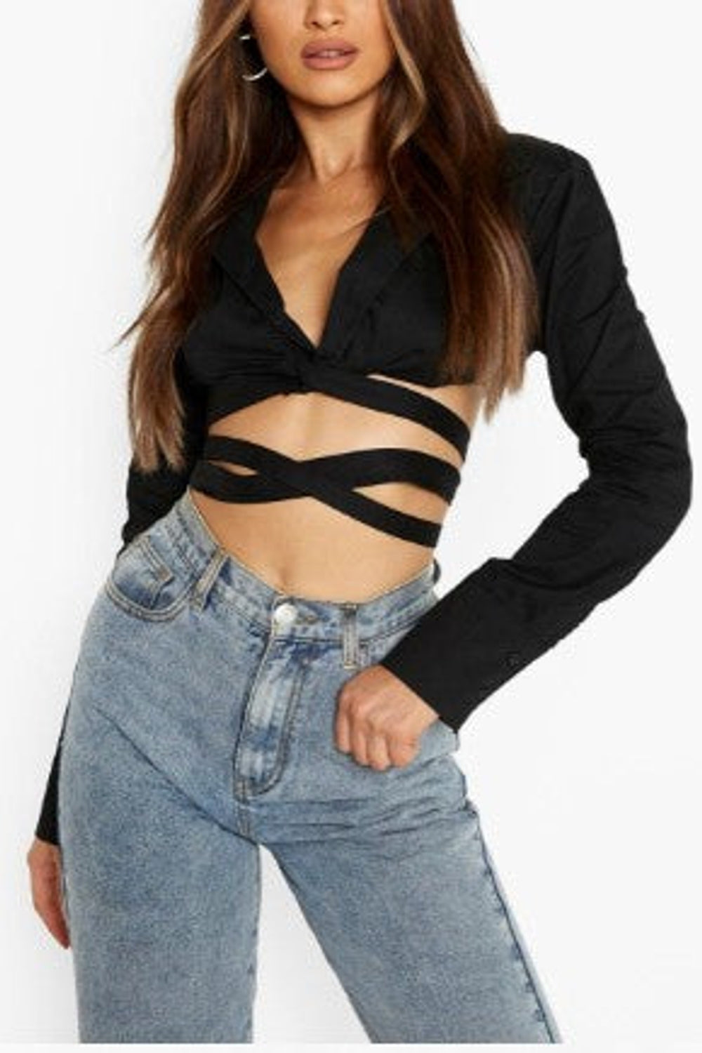 Designed with a trendy tie waist detail, this cropped shirt allows you to adjust the fit according to your preference, creating a customized look that is both modern and flattering. Whether you pair it with high-waisted jeans for a casual daytime outing or style it with tailored trousers for a polished evening ensemble, this shirt effortlessly elevates any outfit.