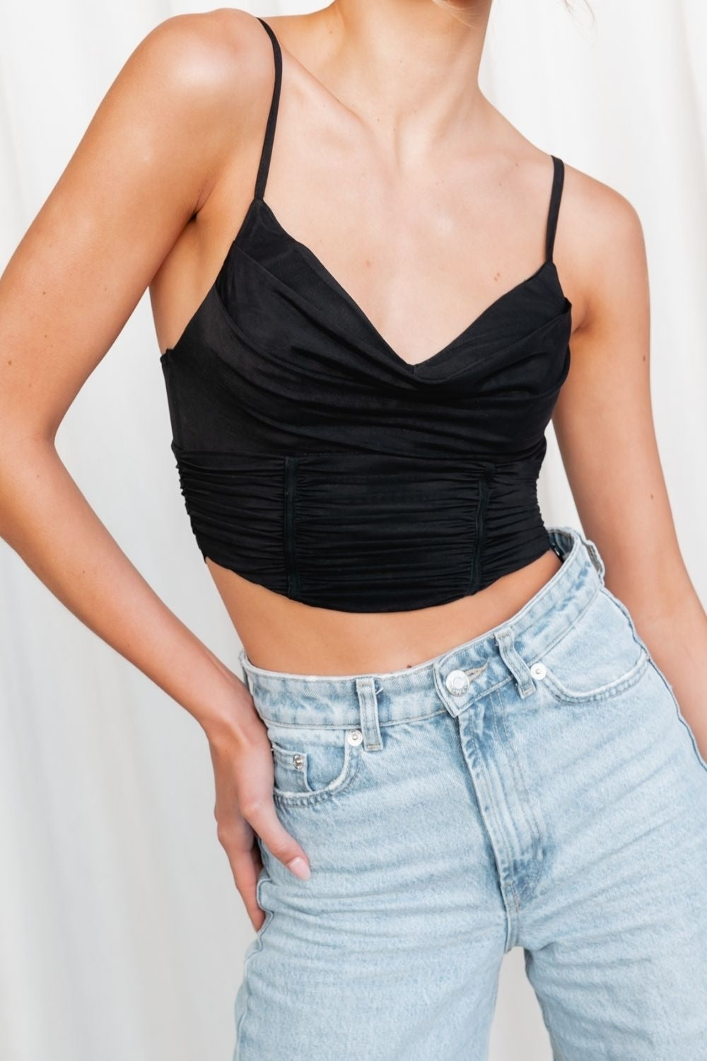 Type- Black Cowl Neckline Ruched Spaghetti Top