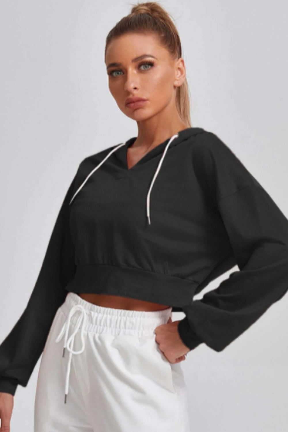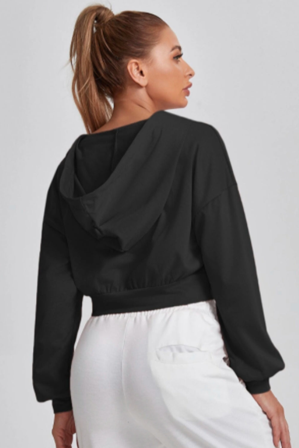 Black Cropped Hoodie Full Sleeves