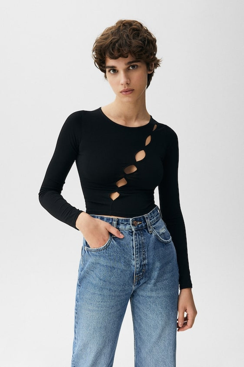 Experiment with different styling options to discover your signature look with the Black Cut Out T-Shirt With Long Sleeves. Embrace your individuality and let your style shine.
