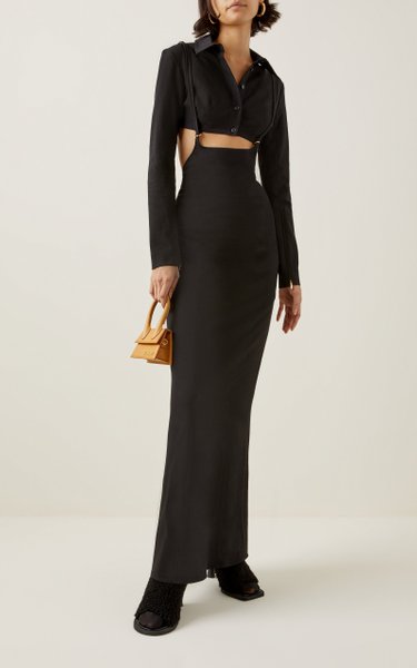 Type - Black Cutout Stretch Polyester Maxi Dress