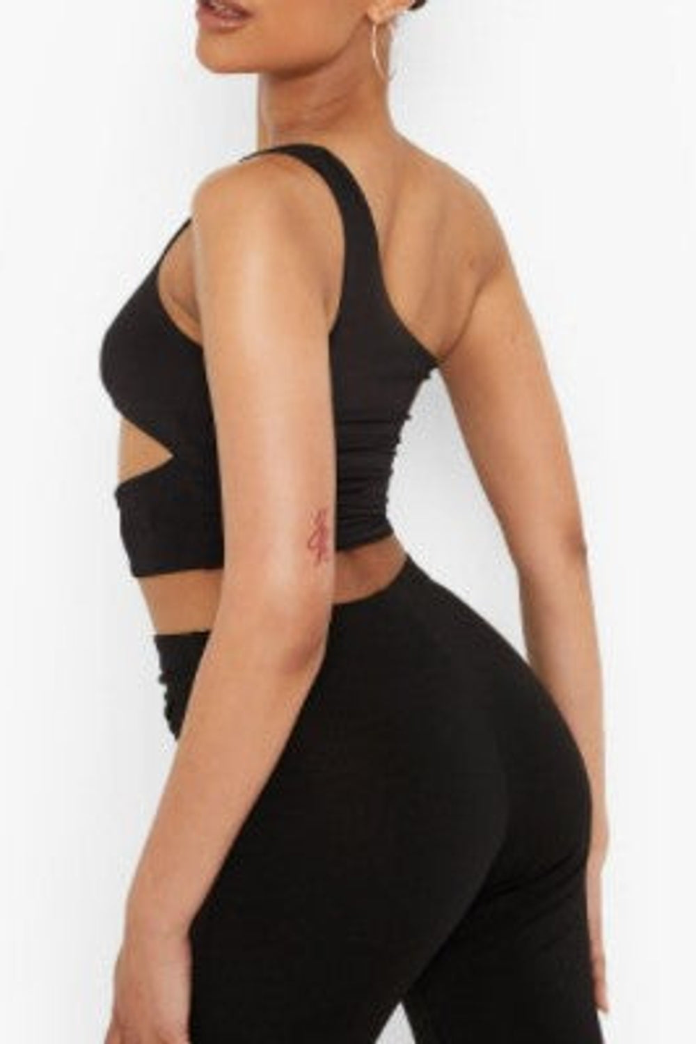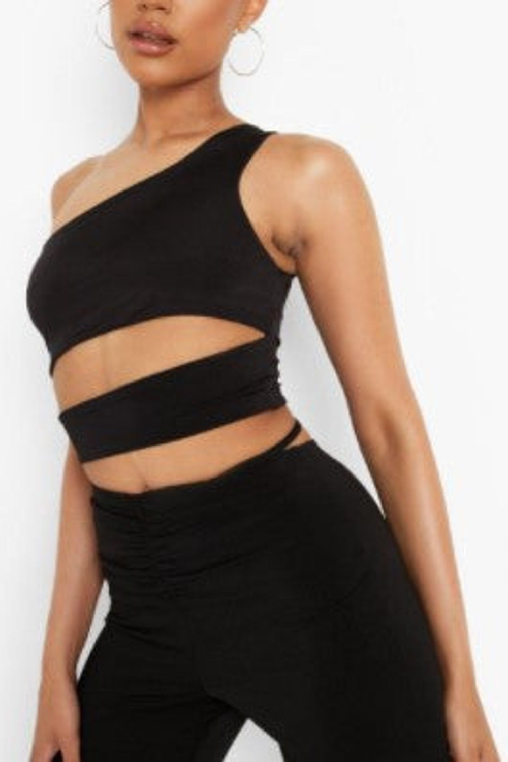 Casual Chic: Pair the Black Double Layer Slinky One Shoulder Crop Top with high-waisted denim shorts and sandals for a laid-back yet stylish daytime look. Add oversized sunglasses and a straw hat for a touch of glam.