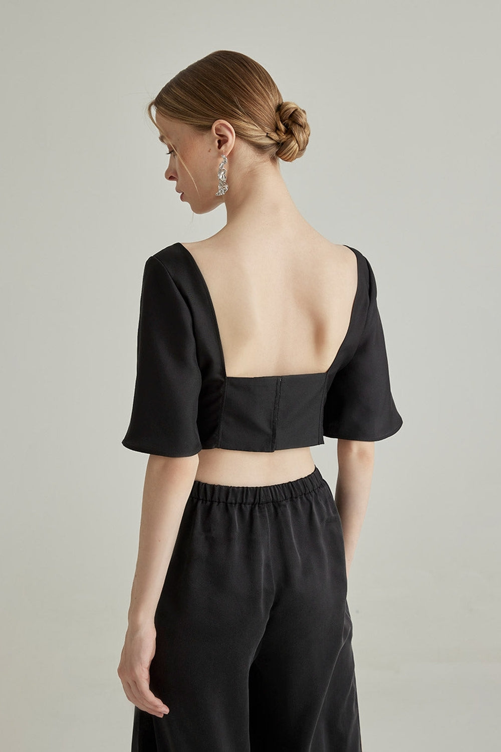 The timeless black color makes it a versatile piece that can be paired with any bottom, from denim shorts to tailored trousers. Its midriff length adds a modern twist, allowing you to showcase your unique sense of style while staying cool during the summer months.