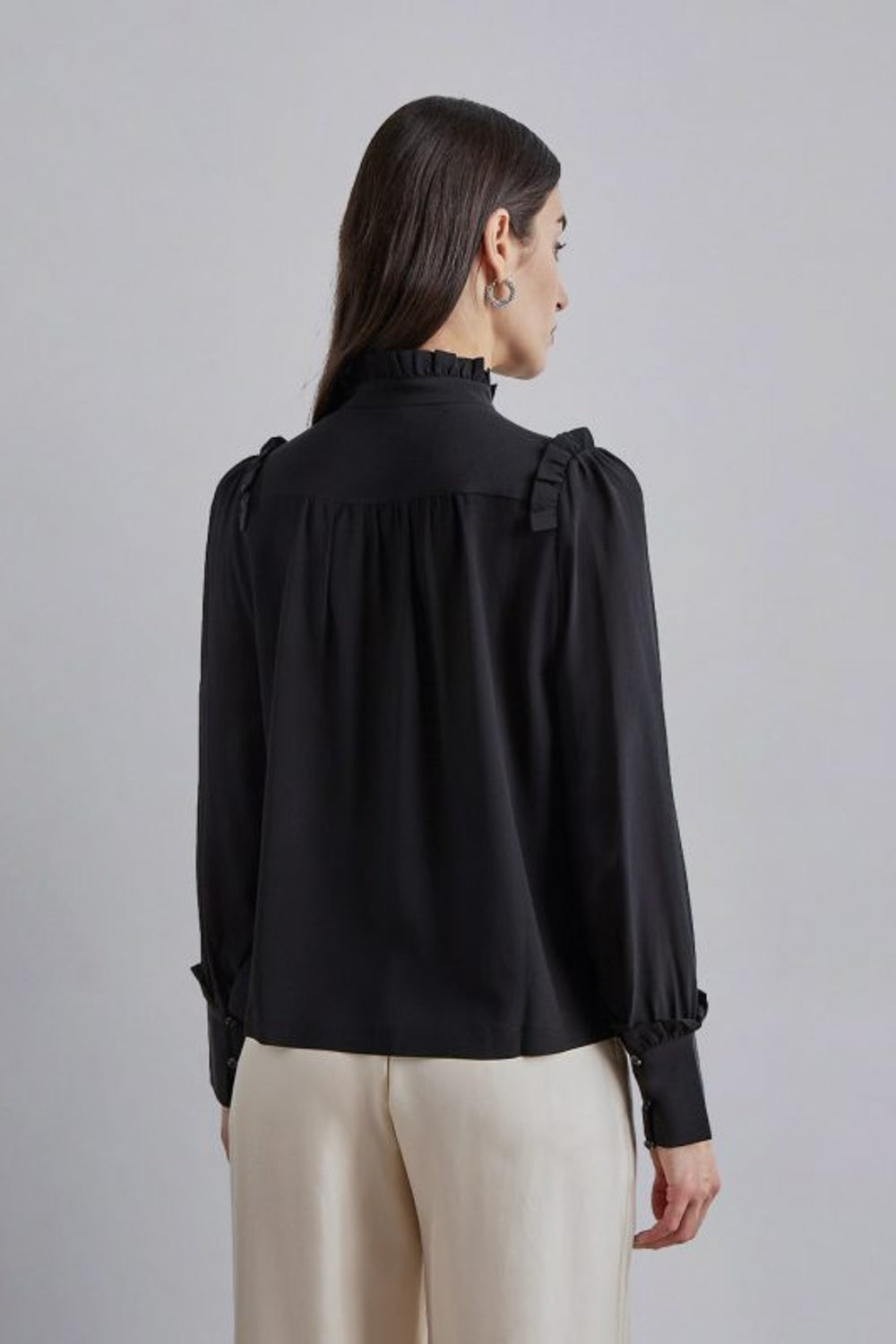 Office Chic: Pair the Black Frilled Cuff Blouse Top with tailored black trousers for a sophisticated office look. Add a statement necklace and heels to elevate the ensemble.
