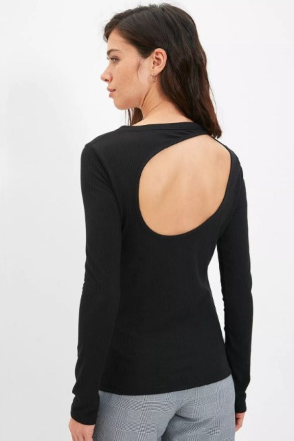 SKU:BlackFullSleeveBackCutOutTop-XS