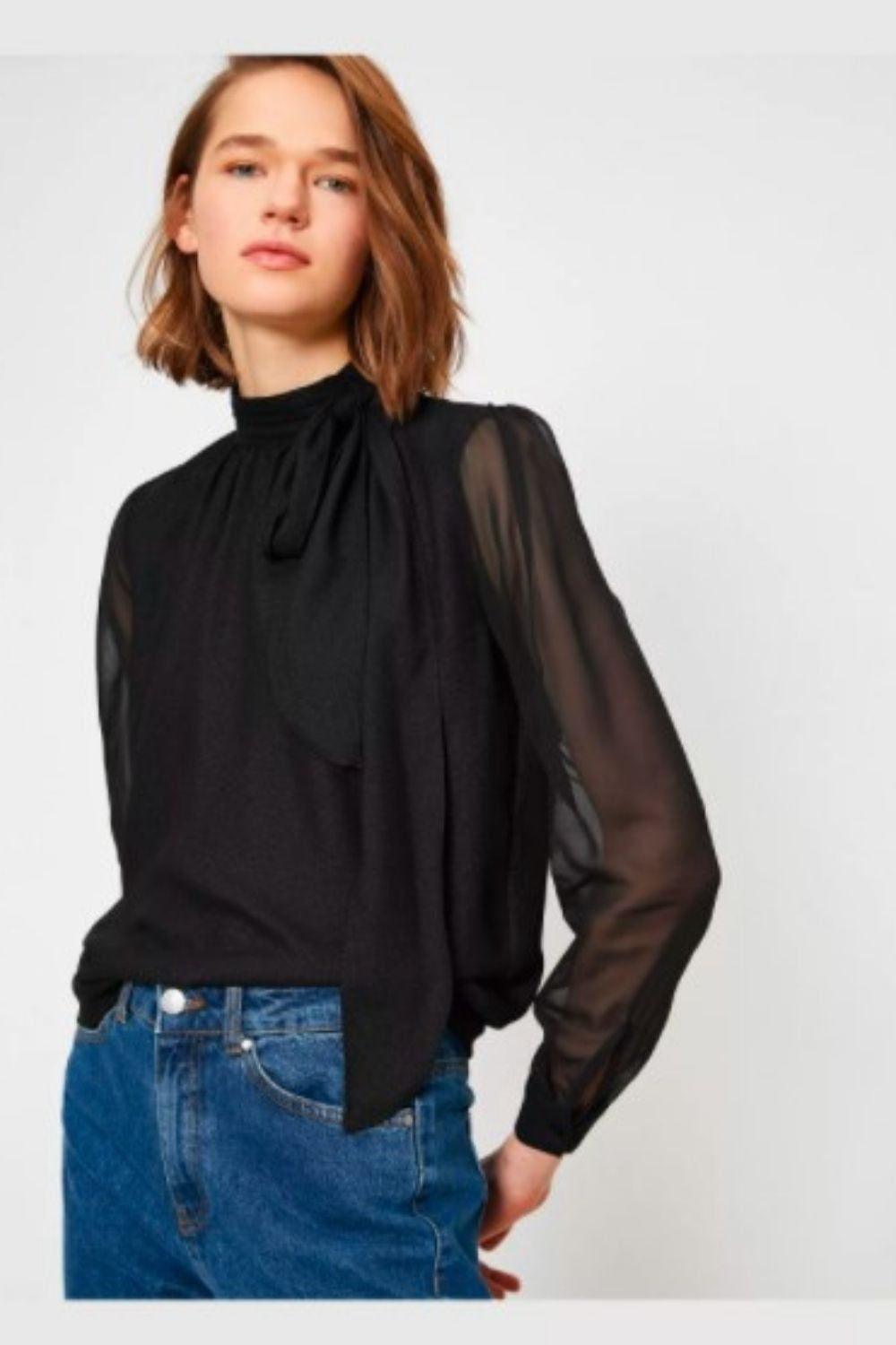 Black Full Sleeve Close Neckline Top