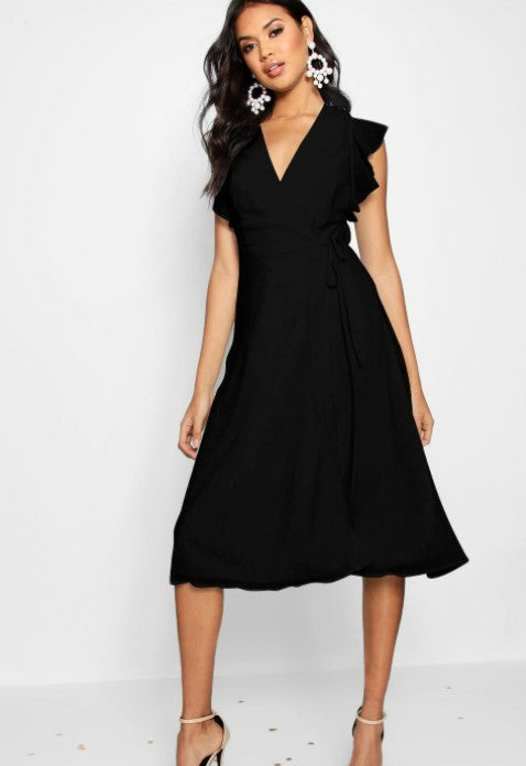 Type - Black Georgette Ruffle Skater Wrap Dress