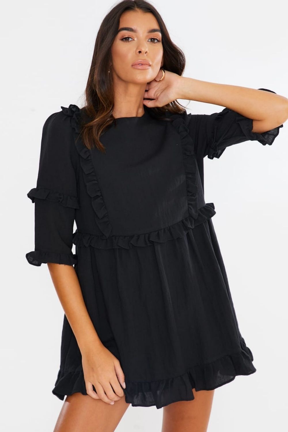 Type- Black 'Girl's Girl' Ruffle Mini Dress