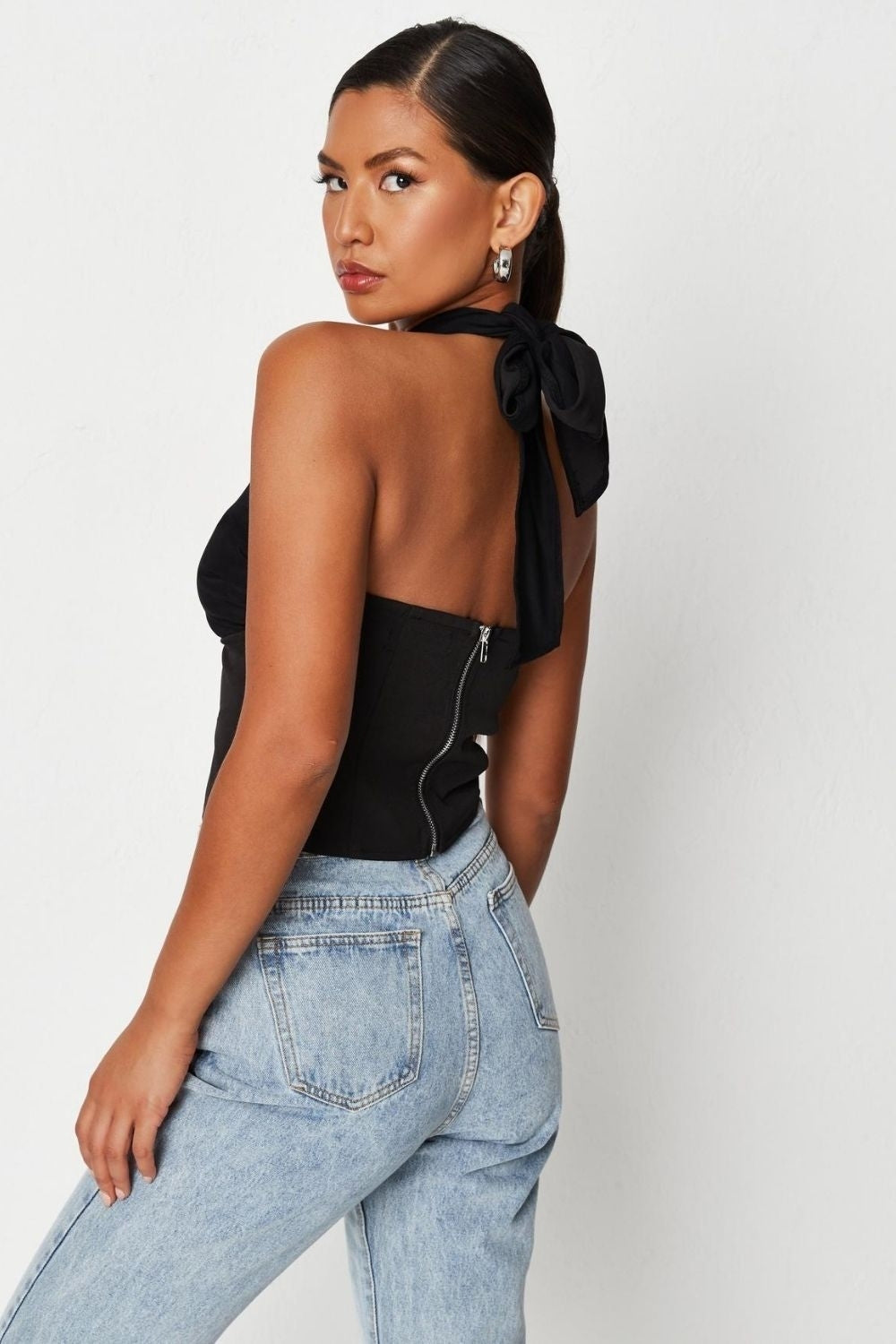 Black Halter Neck Corset Top