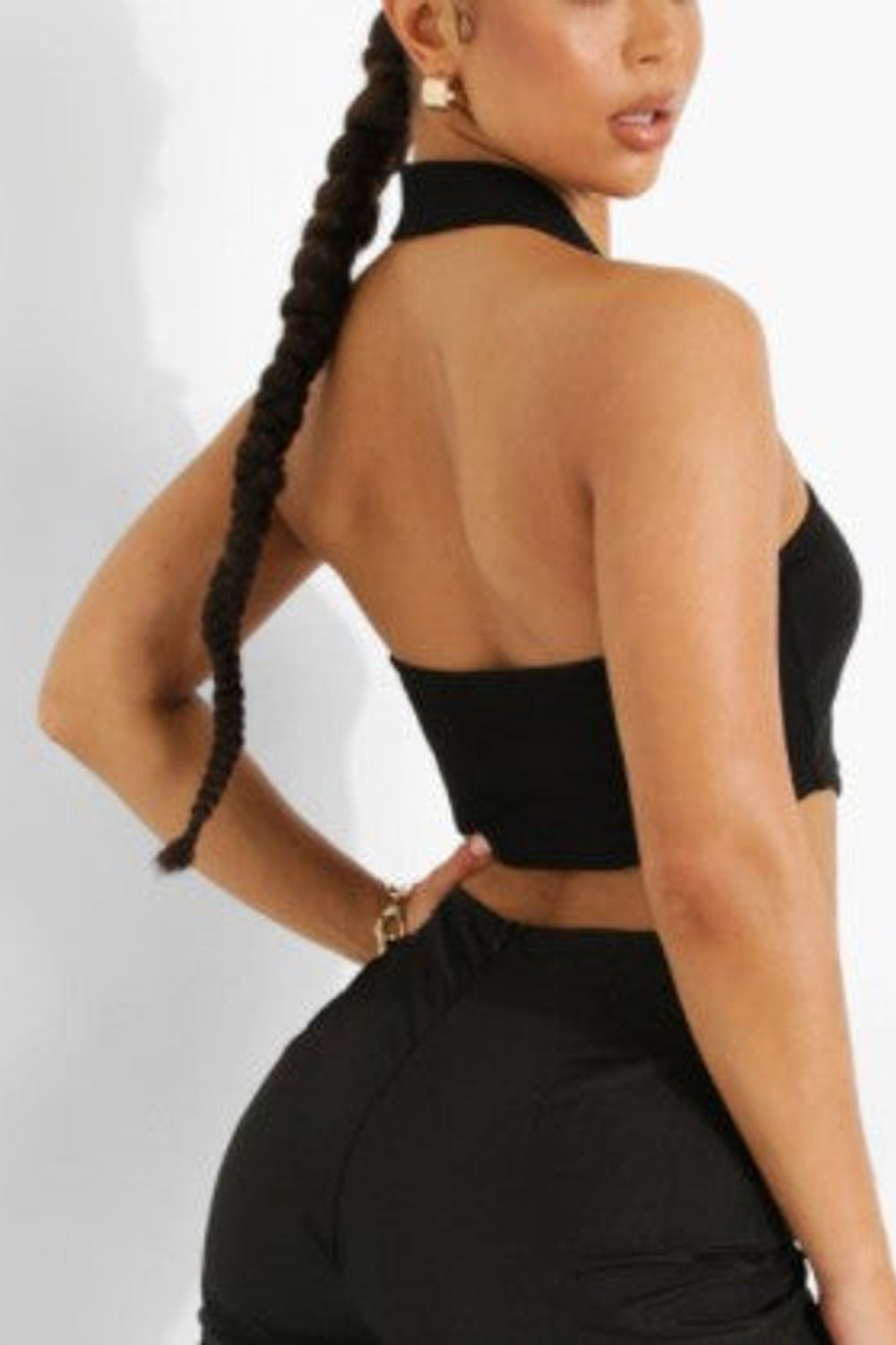 Add a touch of sophistication to your summer wardrobe with our Black High Neck Ribbed Crop Top. Elevate your style game and make a statement wherever you go.