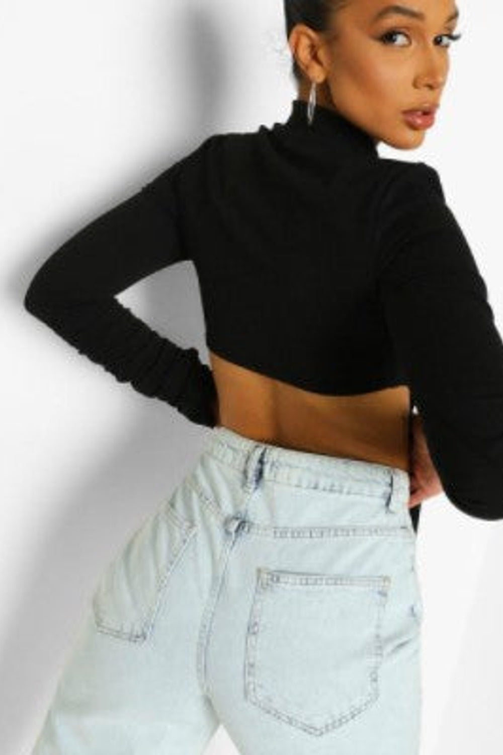 Casual Chic: Pair the Black High Neck Strap Detail Crop Top with high-waisted jeans and sneakers for a trendy and relaxed look. Add some statement accessories like hoop earrings and a layered necklace to elevate the outfit.