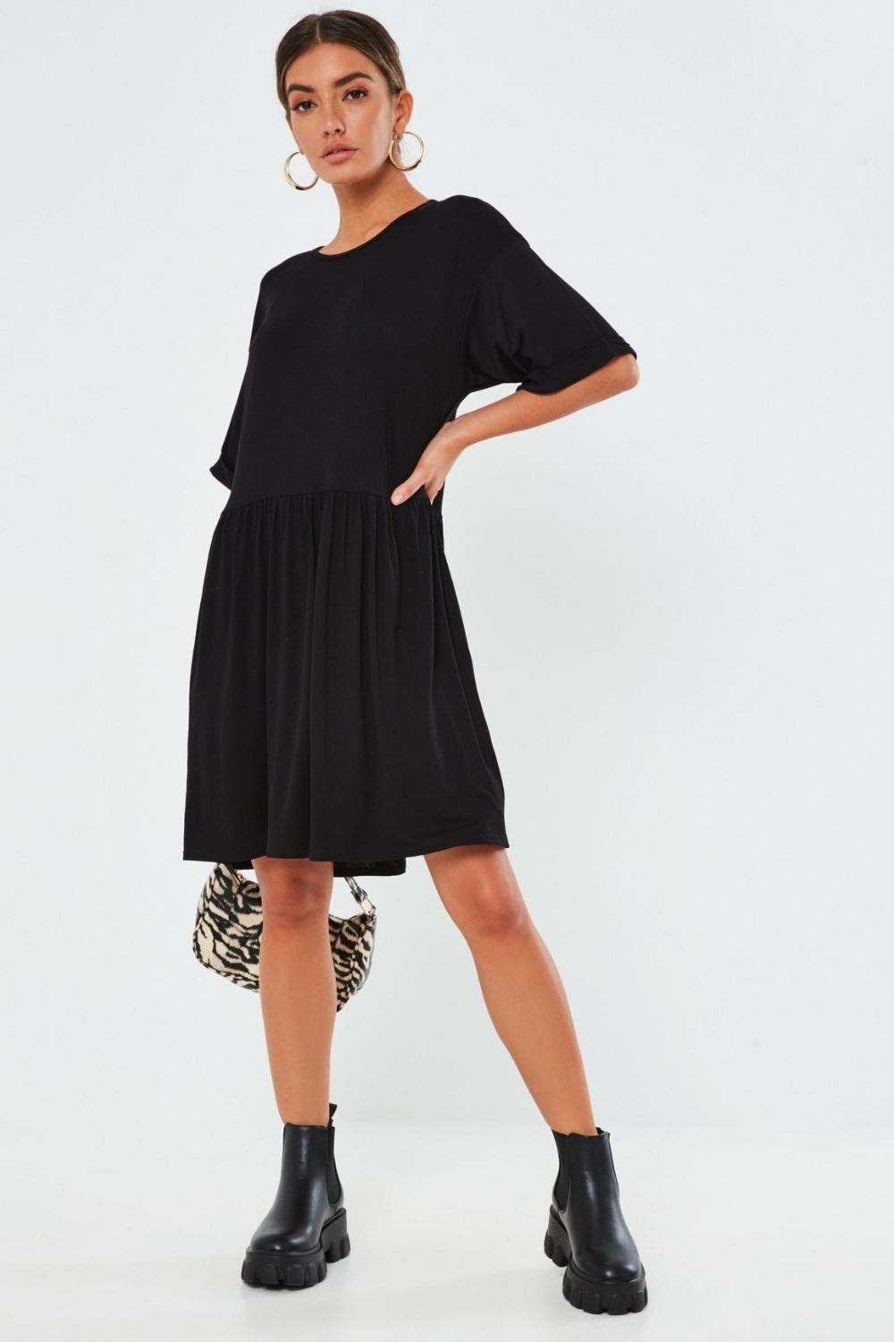 SKU:BlackKneeLengthFlareDress-XS