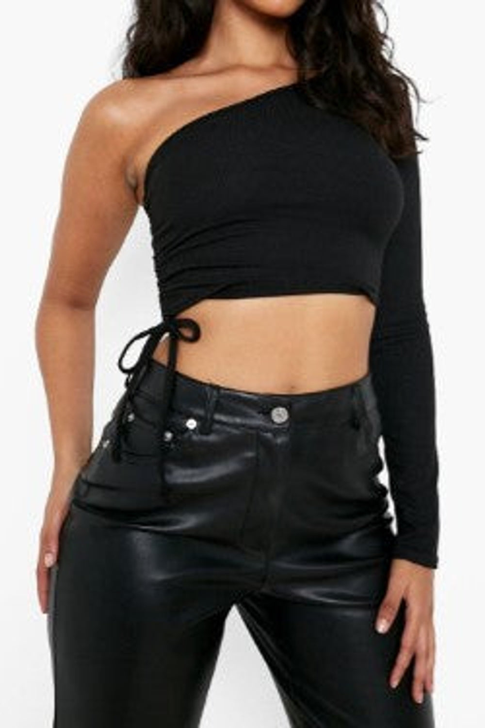 Whether you're hitting the city streets or attending a glamorous soirée, our Black Knit One Shoulder Crop Top is the ultimate wardrobe essential for the fashion-conscious individual. Elevate your style and make a statement wherever you go with this versatile and trendy piece.