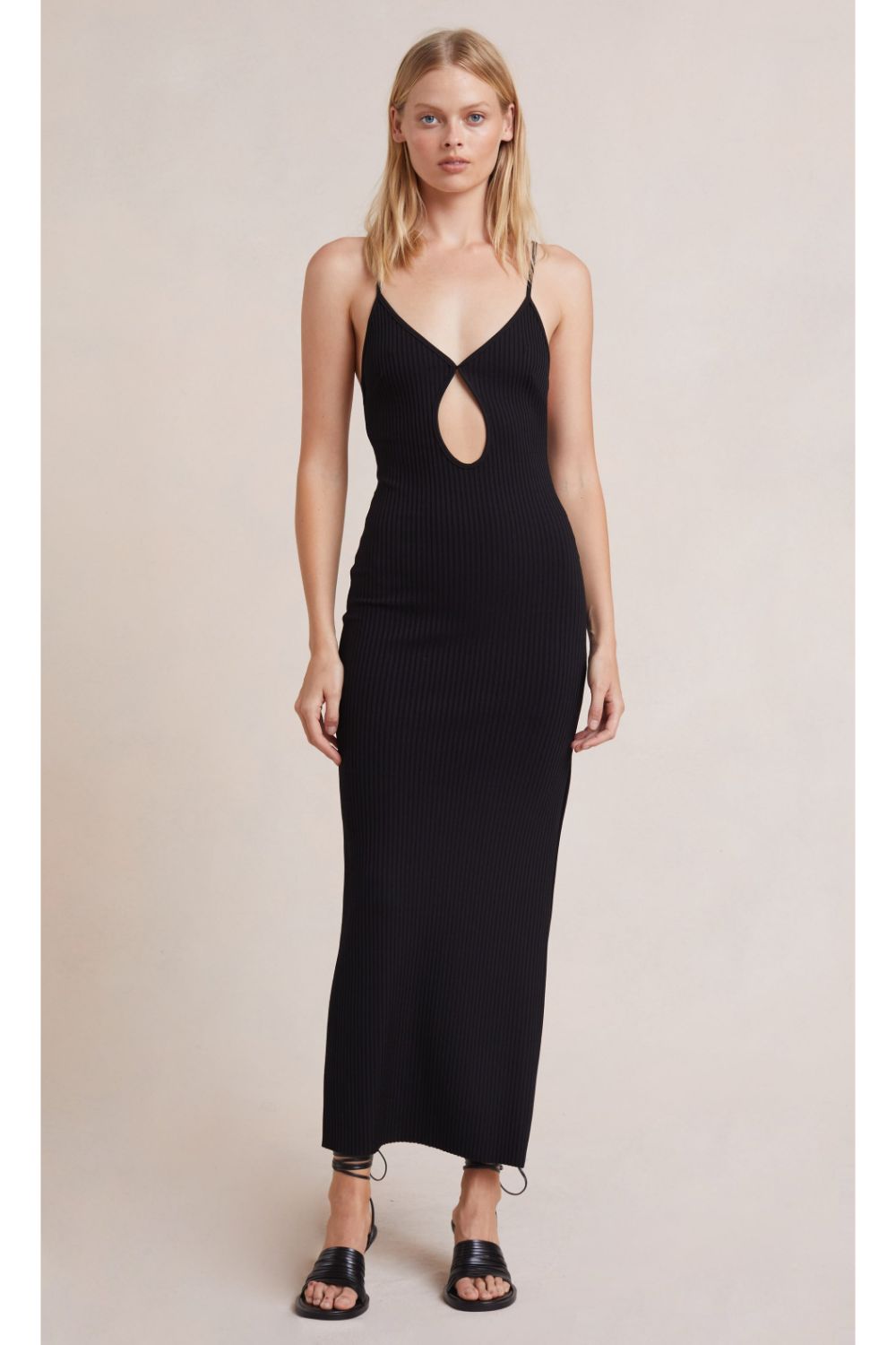 SKU:BlackKnittedCutOutMaxiDress-XS