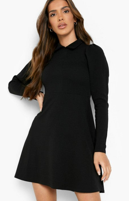Type - Black Long Sleeve Collared Skater Dress