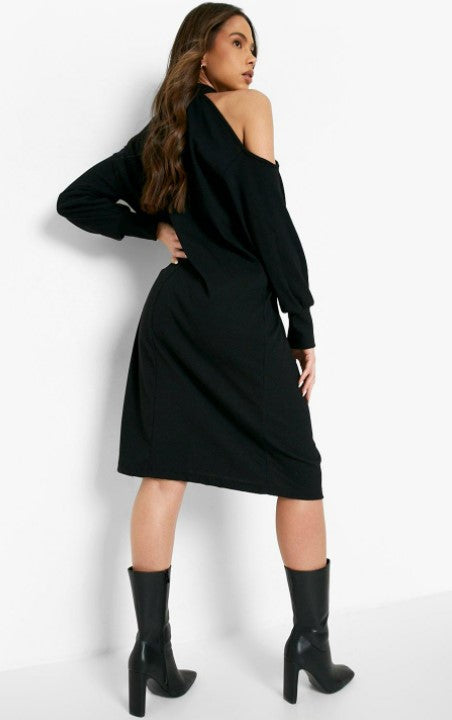SKU:BlackLongSleeveRollNeckMidiDress-XS