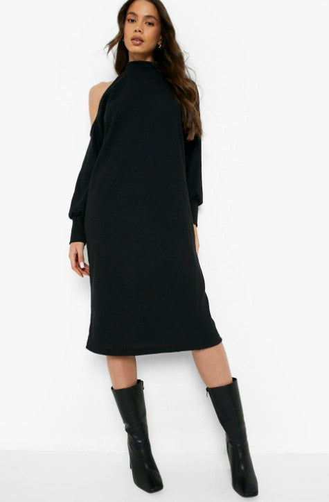 Type - Black Long Sleeve Roll Neck Midi Dress