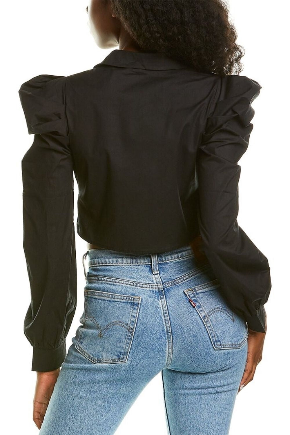 SKU:BlackPuffSleeveFrontTieTop-XS