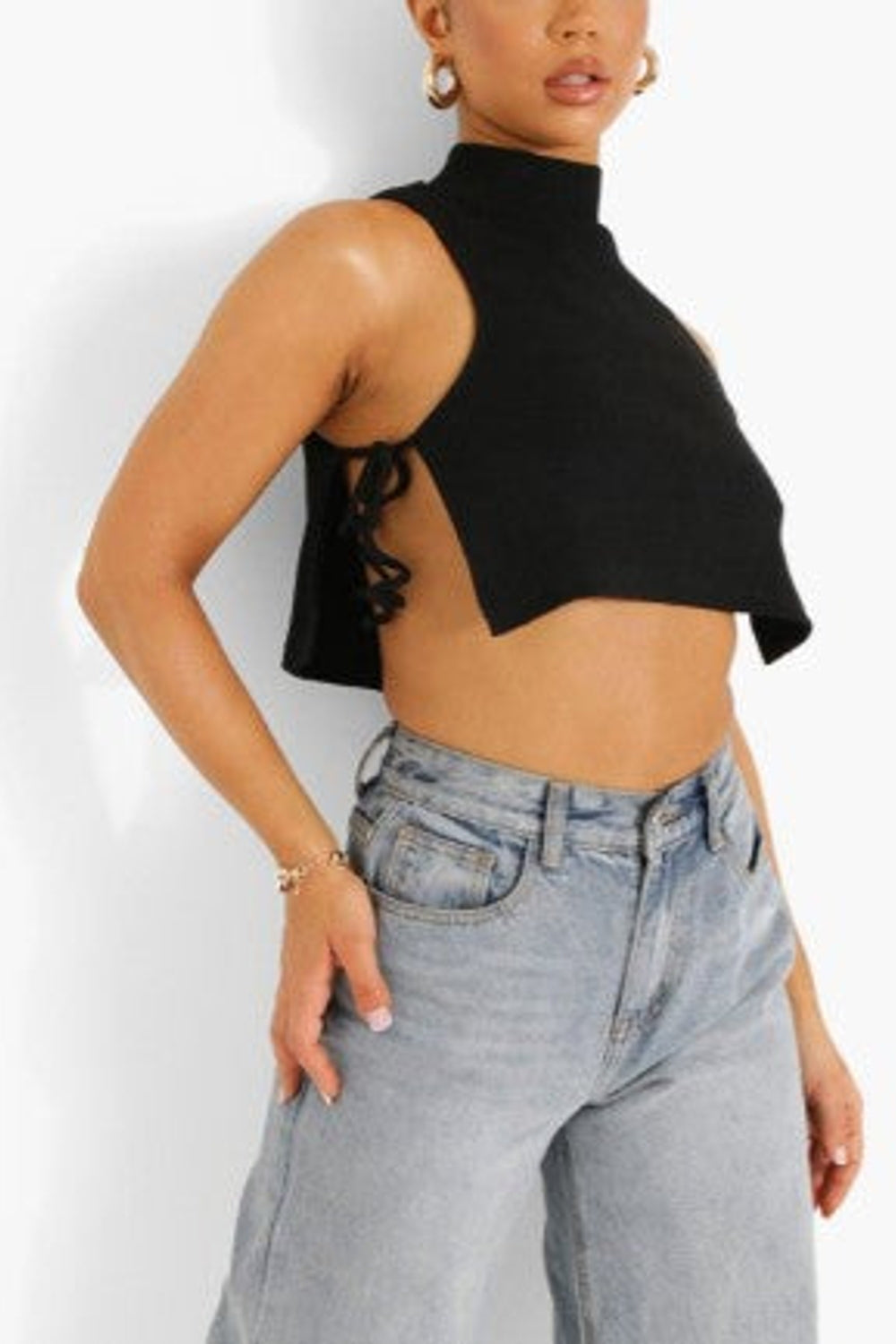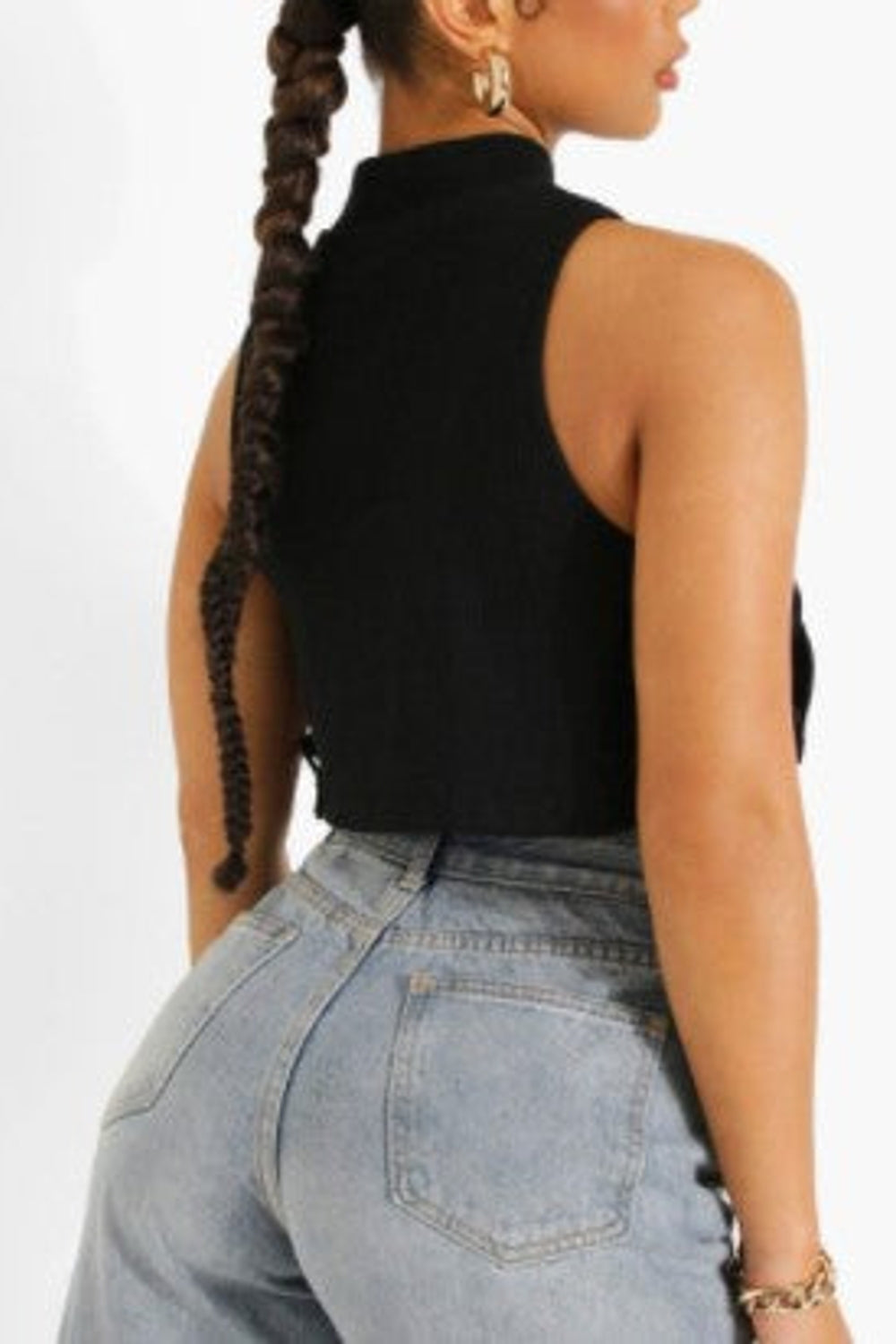 As the sun sets and the evening beckons, transform your look from casual to sophisticated by swapping out your jeans for tailored trousers or a sleek skirt. Amp up the glamour with statement jewelry and strappy heels for a dinner date or a night out on the town. The Black Ribbed High Neck Tie Detail Top effortlessly adapts to any occasion, ensuring you always look effortlessly stylish.