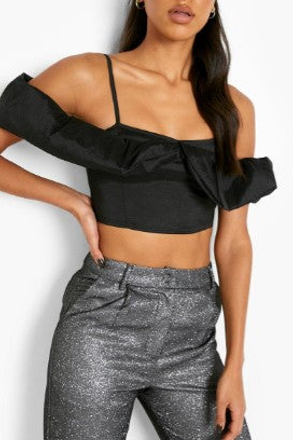 Its timeless black hue ensures versatility, allowing you to pair it with a wide range of bottoms, from tailored trousers to distressed denim jeans. Whether you're attending a brunch with friends or a romantic dinner date, this top promises to make a statement wherever you go.