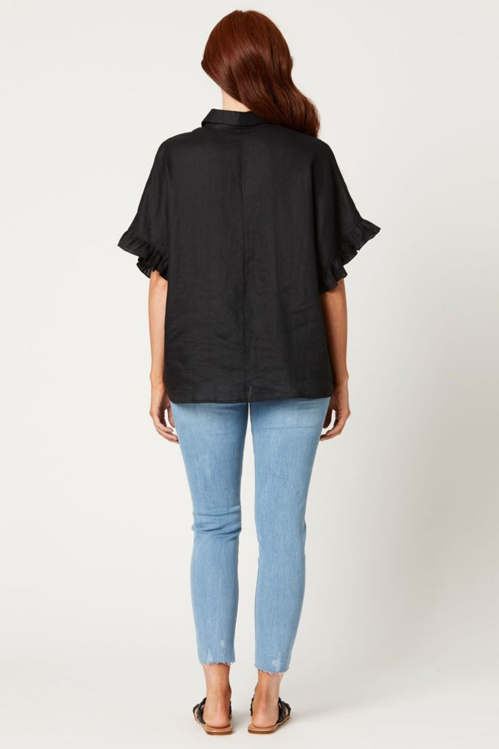 SKU:BlackShirtWithFrilledHemSleeve-XS