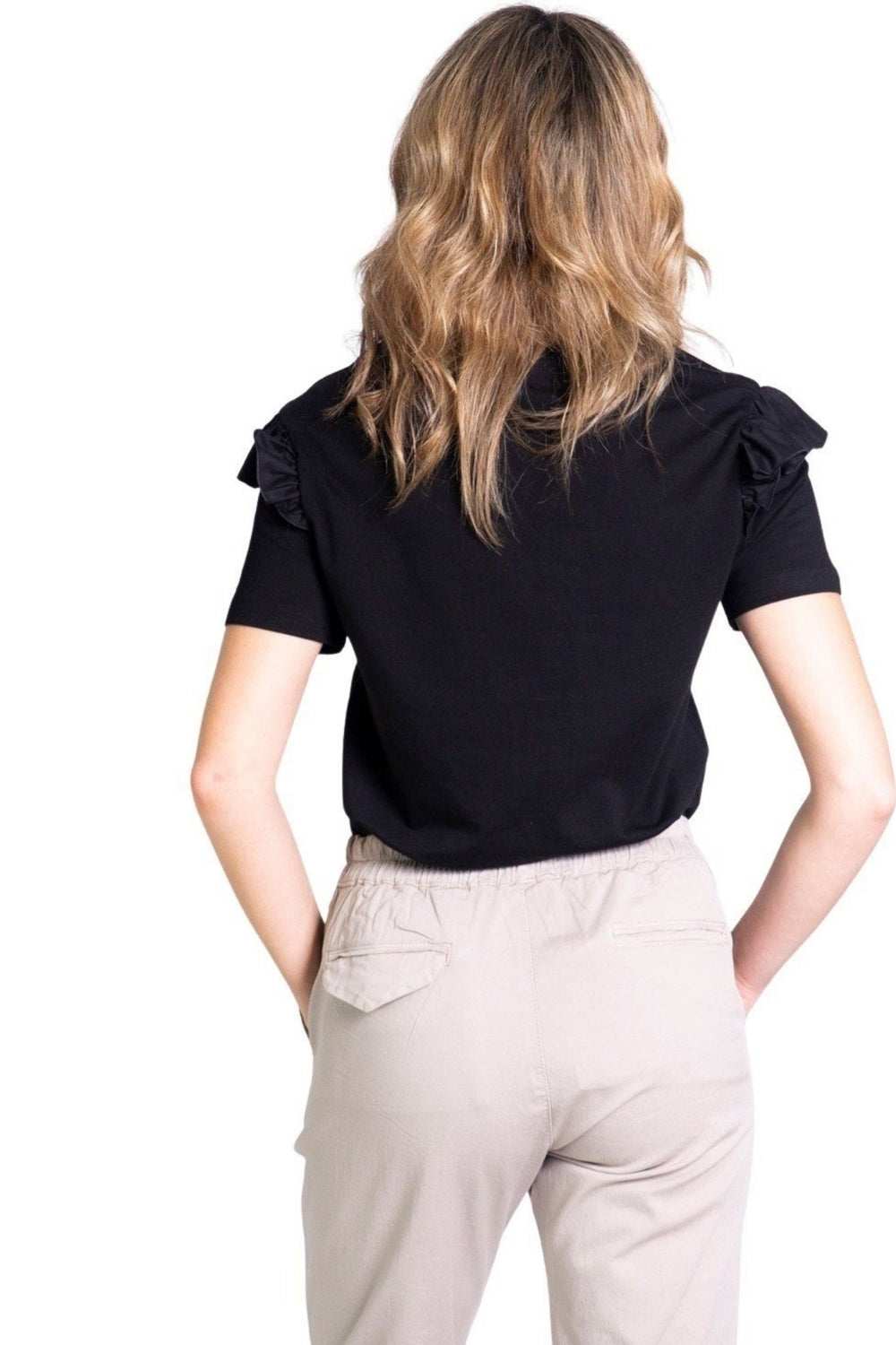 SKU:BlackShortSleeveRuffleDesignTop-XS